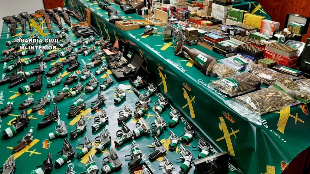 A uno de los detenidos en Madrid se le intervinieron 109 armas de fuego, la mayoría de ellas cortas (pistolas y revólveres) y entre las cuales se encontraban también un fusil de asalto automático AK47 (arma de guerra) de última generación y plenamente funcional, once pistolas detonadoras transformadas para efectuar fuego real y cuatro pistolas semiautomáticas de fabricación completamente artesanal; además de más de 14.000 cartuchos metálicos de diferentes calibres, 5,6 kg de pólvora para la fabricación de munición y abundantes piezas y componentes esenciales para el ensamblaje y manipulación de armas de fuego.