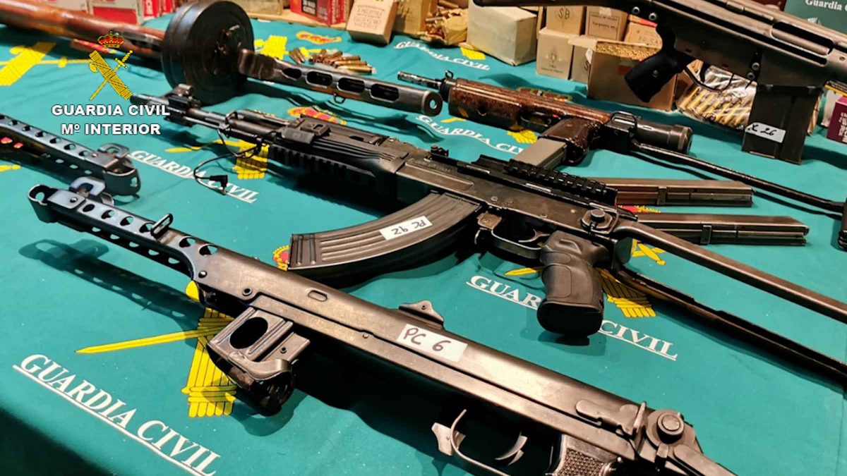 A uno de los detenidos en Madrid se le intervinieron 109 armas de fuego, la mayoría de ellas cortas (pistolas y revólveres) y entre las cuales se encontraban también un fusil de asalto automático AK47 (arma de guerra) de última generación y plenamente funcional, once pistolas detonadoras transformadas para efectuar fuego real y cuatro pistolas semiautomáticas de fabricación completamente artesanal; además de más de 14.000 cartuchos metálicos de diferentes calibres, 5,6 kg de pólvora para la fabricación de munición y abundantes piezas y componentes esenciales para el ensamblaje y manipulación de armas de fuego.