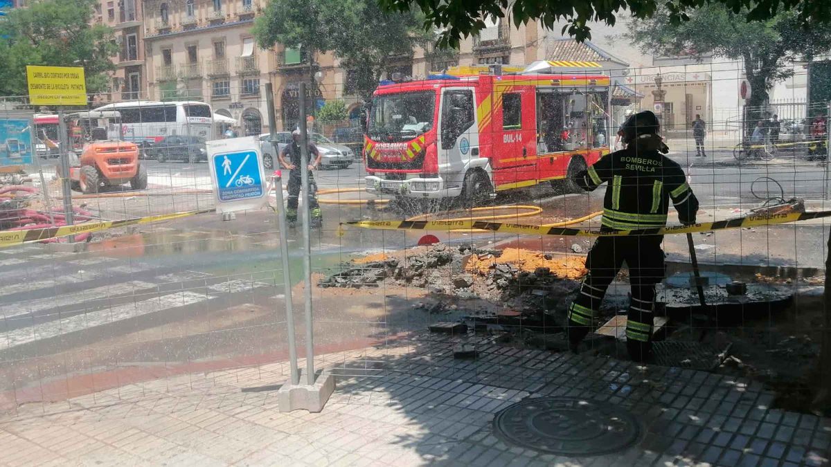 Los Bomberos y la Policía Local se han desplazado rápidamente a la zona afectada y han intervenido acotándola durante la reparación de la tubería.