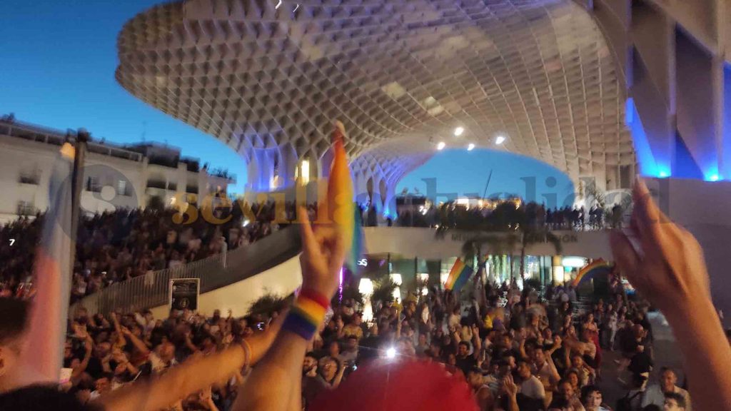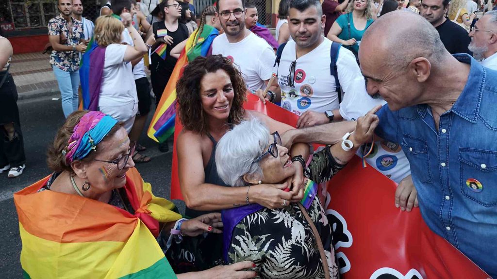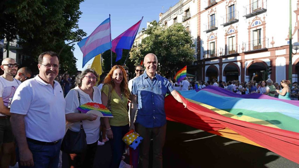 El alcalde de Sevilla, Antonio Muñoz, ha asistido hoy al acto central del Mes de la Diversidad Sexual, la manifestación del Orgullo, organizada por la Federación Plataforma 28J Andalucía, y cuyo lema de este año ha sido ‘Tu violencia no nos callará. Stop delitos de odio’. Una jornada de Orgullo en Sevilla que ha dejado diferentes imágenes a los largo de su recorrido.