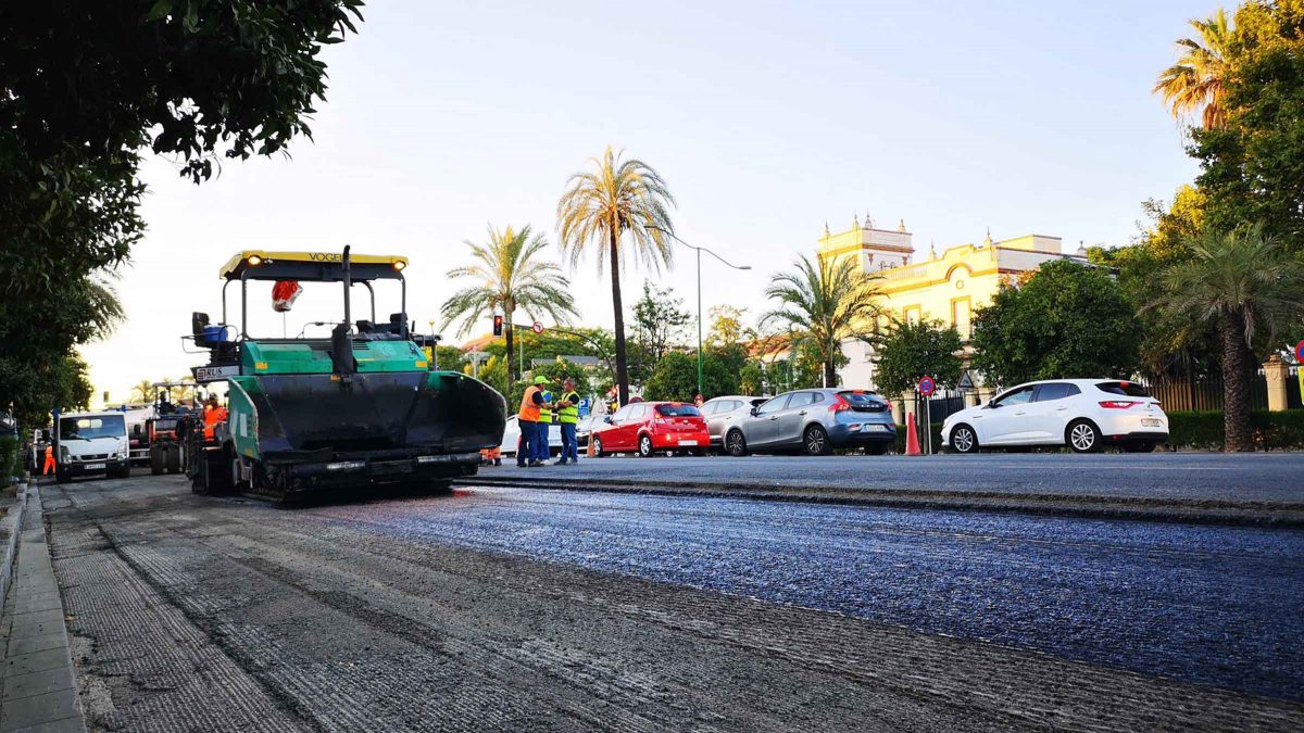 La Gerencia de Urbanismo y Medio Ambiente del Ayuntamiento de Sevilla, en coordinación con el Área Municipal de Movilidad y los distritos Sur y Bellavista-La Palmera, ha iniciado hoy la obra para mejorar las condiciones del pavimento del tramo la Avenida de la Palmera comprendido entre Glorieta Plus Ultra y calle Cardenal Ilundain. Está previsto que esta intervención tenga una duración de seis días, de forma que quedarán terminadas el viernes 1 de julio. La mayor parte de esta intervención se desarrollará en horario nocturno para causar las mínimas afecciones posibles a la circulación, si bien los trabajos previos ya se han iniciado aprovechando la jornada de este domingo, con menor intensidad en la circulación, para realizar labores de fresado, pavimentación y señalización en sentido Cádiz.
