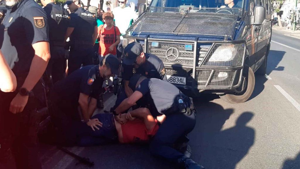 Juan, miembro de la Plataforma Vecinos Hartos, fue detenido el pasado lunes durante la manifestación en Amate por «resistencia y desobediencia grave a los a los agentes de la autoridad». La detención fue dura y violenta, llegándole a poner uno de los agentes la rodilla en la cabeza cuando Juan se encontraba en el suelo.