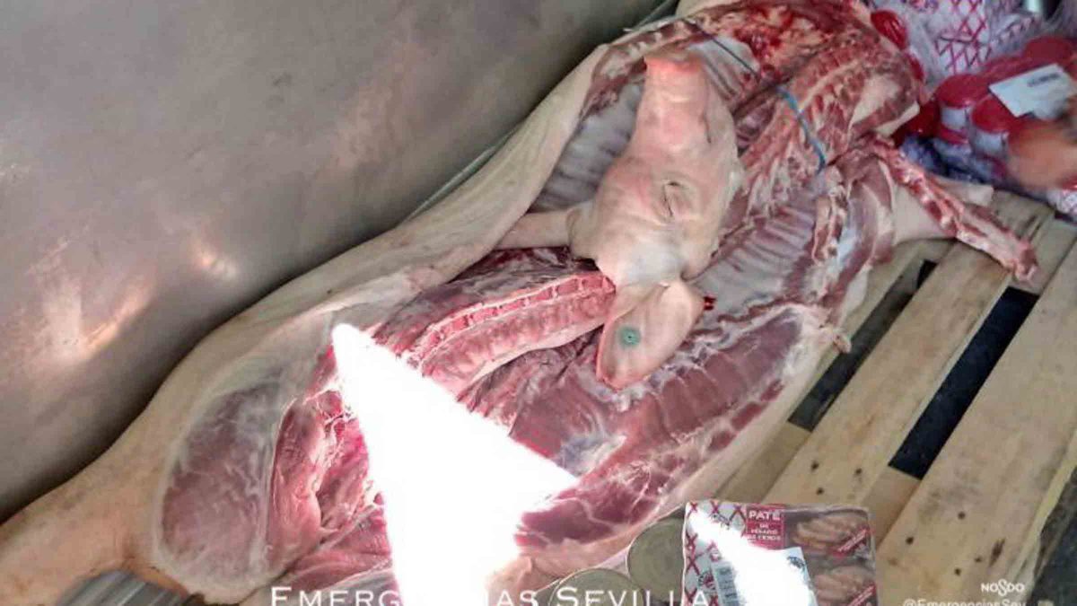 Tal y como ha precisado Emergencias Sevilla, el camión, que no portaba la tarjeta pertinente para el transporte de la carne, llevaba apagado el equipo de frío, siendo esta no apta para el consumo.
