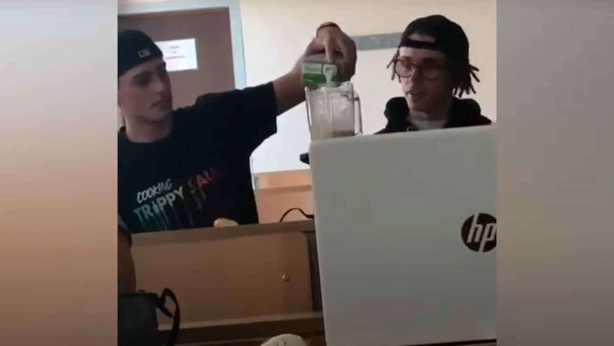 El suceso ocurrió el pasado 5 de octubre, cuando estos dos youtubers se colaron en las clases con una batidora eléctrica, una tabla de cortar, fruta y leche. Con ayuda de una alargadora, engancharon la batidora a la corriente, empezaron a cortar la fruta para después meterla en la batidora y añadir leche. Una vez que todo estaba listo, distrayendo tanto a los alumnos como a los profesores.