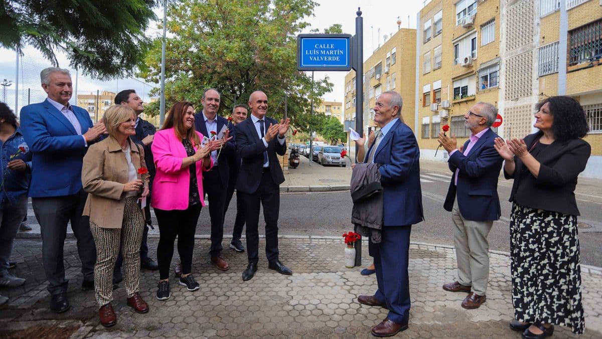 El alcalde de Sevilla, Antonio Muñoz, ha presidido hoy el acto de rotulación de la calle Luis Martín Valverde en el Distrito Sur, una nueva denominación con la que el Ayuntamiento de Sevilla quiere reconocer la trayectoria de este activista que falleció en 2020 y que desarrolló una importante labor desde 1981 en el Polígono Sur.