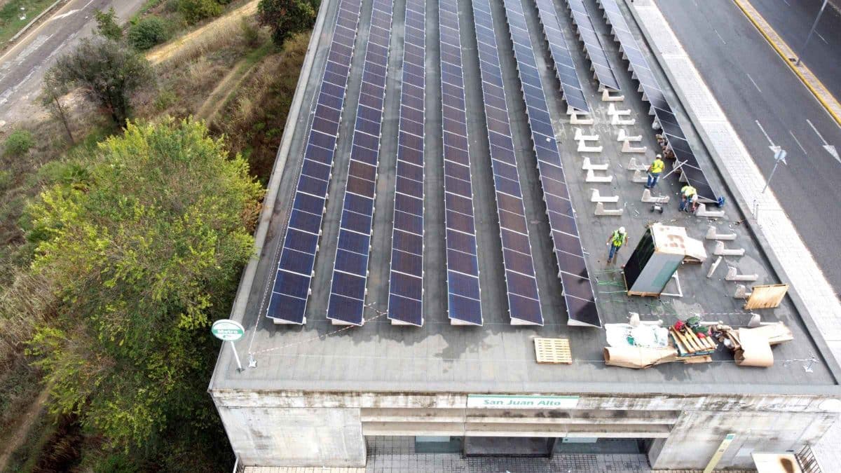 Metro de Sevilla, sociedad concesionaria de la Junta de Andalucía, ha iniciado la instalación de casi 2.000 placas fotovoltaicas repartidas en las cubiertas de diferentes estaciones, así como en el edificio de sus oficinas centrales junto a Talleres y Cocheras, para potenciar así el autoconsumo energético de este sistema de transporte colectivo en el área metropolitana de Sevilla. La inversión asciende a un millón de euros.