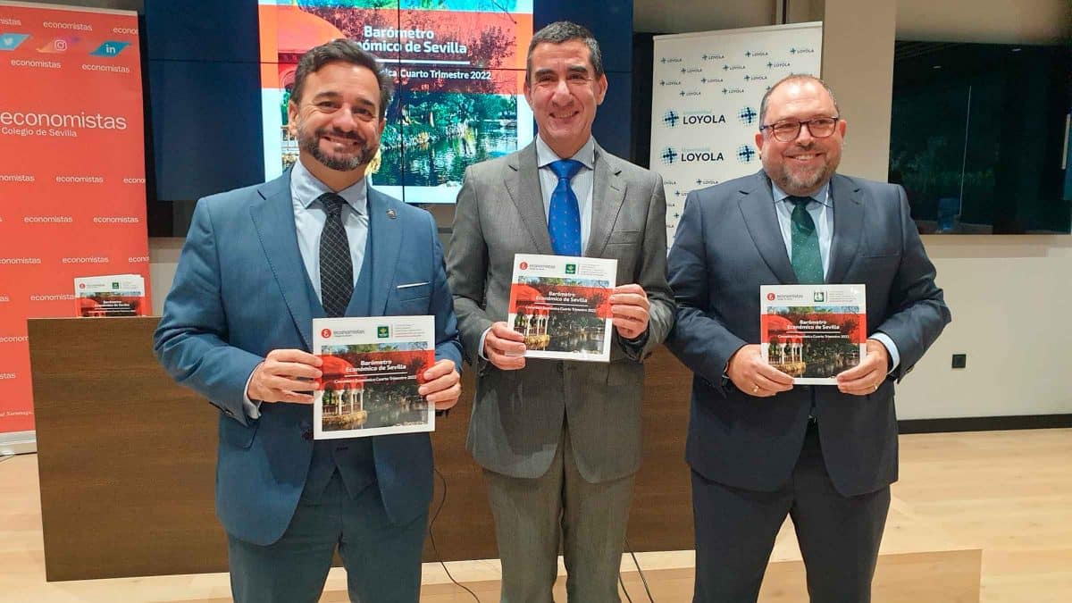 Estos datos se han dado a conocer durante la presentación de la decimoquinta edición del Barómetro Económico de Sevilla en el Colegio Profesional de Economistas de Sevilla, publicación coordinada por el profesor del Departamento de Economía de la Universidad Loyola y director del informe, Manuel Alejandro Cardenete. Han estado presentes en el acto, el decano del Colegio de Economistas, Francisco J. Tato Jiménez, y Rafael Peral Sorroche, responsable de Convenios, Colectivos e Instituciones de Caja Rural del Sur.