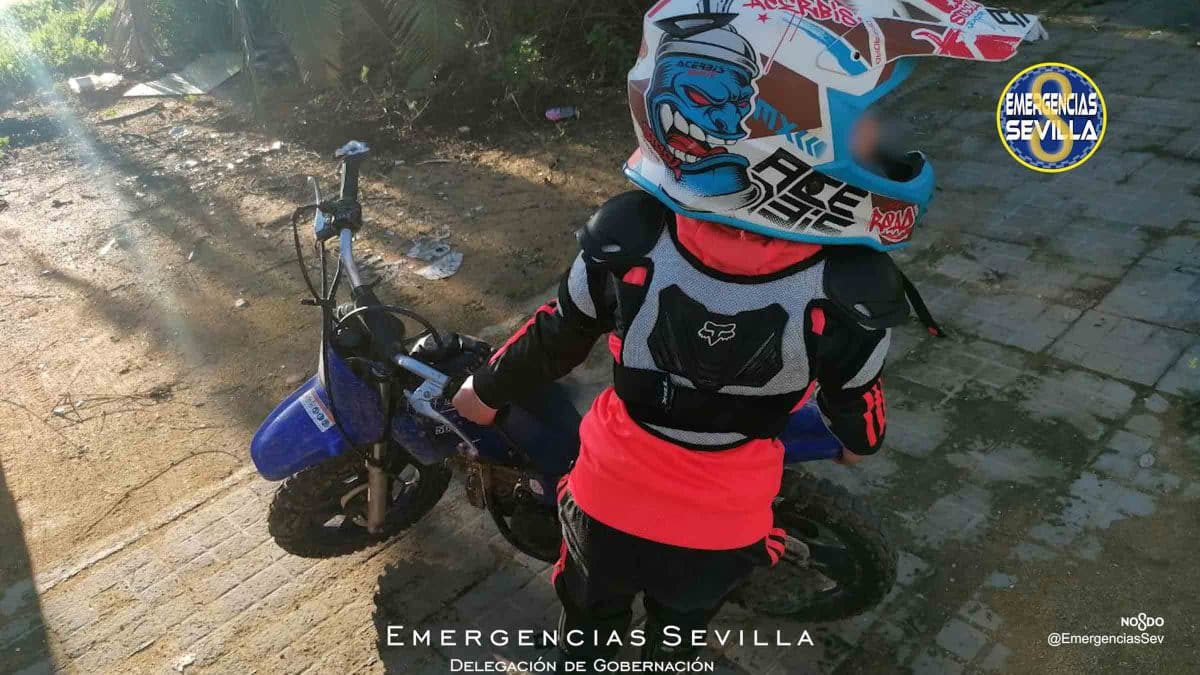 Agentes de la Policía Local, realizando funciones de Policía de Barrio en Palmete, localizaron en la calle Salobreña a un menor de siete años conduciendo un ciclomotor de tipo cross. El tamaño del vehículo y la estatura de su conductor no permitía su visibilidad entre los vehículos que circulaban en ese momento, siendo esta una situación de verdadero riesgo para el menor, por lo que procedieron a darle el alto.