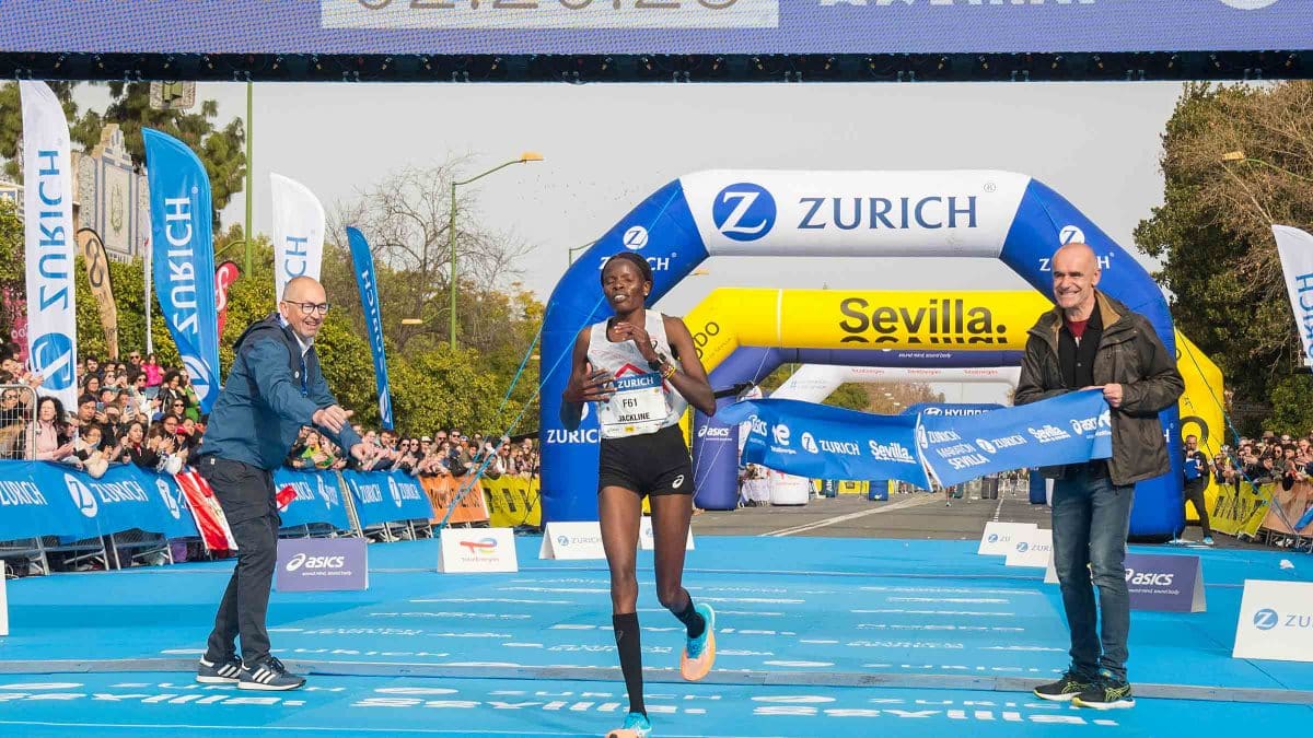El Zúrich Maratón de Sevilla 2023 volvió a celebrar una edición superlativa en la que Jackline Chelal en categoría femenina y Gadisha Birhanu Shumie en la masculina fueron los vencedores de la prueba. El etíope, que cruzó la meta con un tiempo de 2:04:59, ha logrado además la mejor marca mundial del año. La edición de 2023 volvió a brillar deportivamente por sus registros con 25 mínimas para los Juegos Olímpicos de París 2024, 33 mínimas para los Campeonatos del Mundo de Budapest 2023, o los 8 récords nacionales masculinos de Israel (Gashau Ayele, 2:05:33), Perú (Christian Pacheco, 2:07:38), Bolivia (Hector Garibay Flores 2:07:44), Chipre (Amine Khadiri, 2:10:20) y Chile (Carlos Díaz, 2:10:26). Entre las mujeres, también cayeron las plusmarcas de Finlandia (Alisa Vainio, 2:27:26), Ecuador (Silvia Patricia Ortiz, 2:27:36) y Hungría (Nóra Szabó, 2:28:25). El último dato que confirma la velocidad de la prueba fue que 16 hombres lograron bajar de 2:08, mientras que 11 mujeres entraron en la línea de meta por debajo de 2:28. Una de ellas fue Meritxel Soler que logró además el segundo mejor tiempo de la historia entre las féminas españolas.