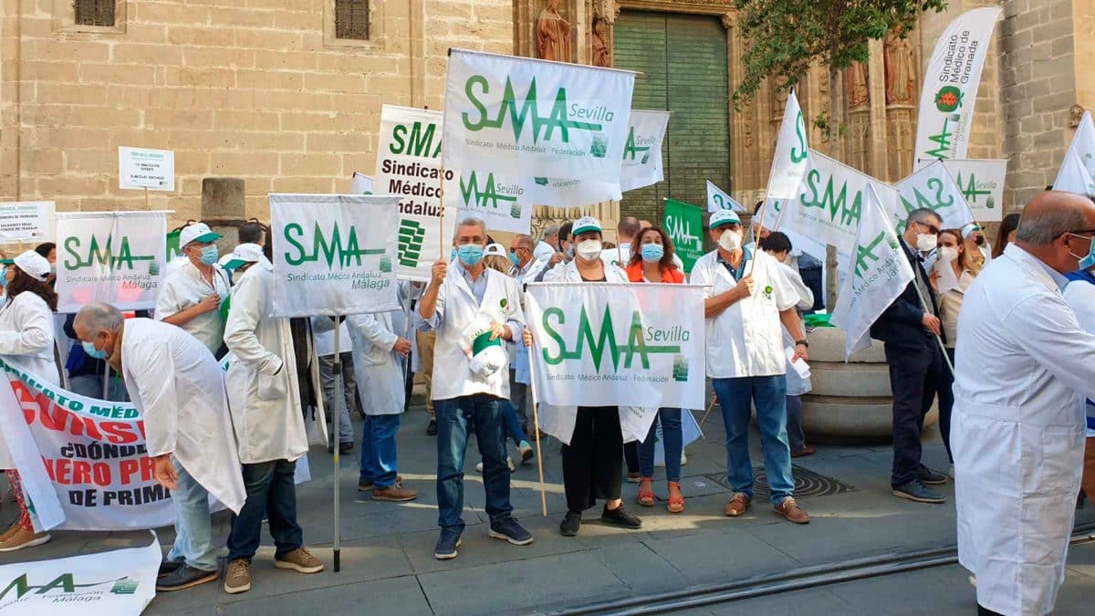 Los médicos andaluces de Atención Primaria se han manifestado este miércoles en Sevilla desde el Palacio de San Telmo hasta la sede del Servicio Andaluz de Salud (SAS), convocados por el Sindicato Médico Andaluz (SMA), para denunciar «la situación de abandono de la Atención Primaria» tras dos meses y medio desde que se firmó el acuerdo con la Consejería de Salud y Consumo. De forma paralela hay convocada una jornada de huelga, desde las 08:00 hasta las 20:00 horas, a la que están llamados todos los facultativos de este nivel asistencial.