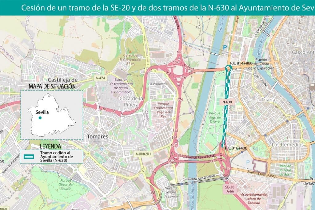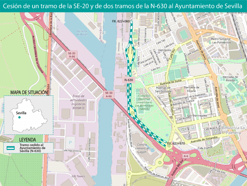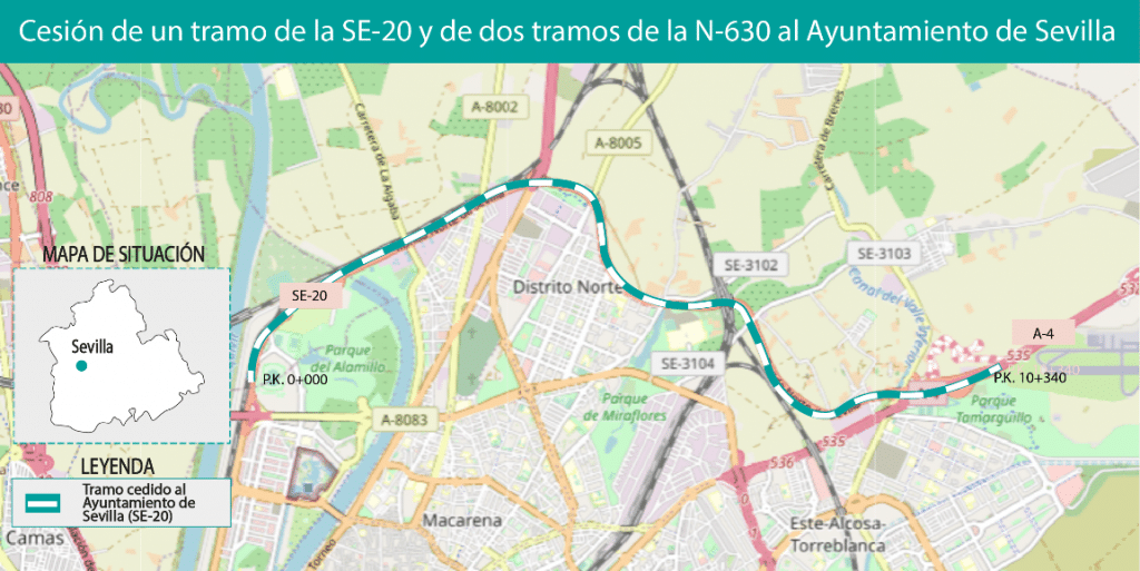 El Ministerio de Transportes, Movilidad y Agenda Urbana (Mitma) ha cedido al Ayuntamiento de Sevilla la titularidad de un tramo en la carretera SE-20 y dos tramos en la N-630.