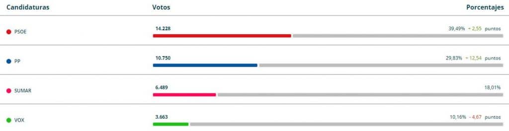 Sumar, a su vez, ha sido tercera fuerza del distrito con 6489 votos, mientras que la cuarta fuerza ha sido Vox con 3663 votos.
