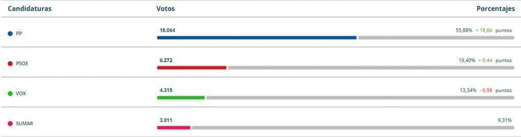Vox, a su vez, ha sido tercera fuerza del distrito con 4315 votos, mientras que la cuarta fuerza ha sido Sumar con 3011 votos.