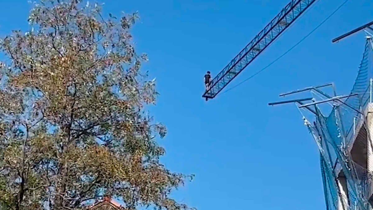 Los Bomberos han rescatado al joven que se encontraba subido en lo alto de una grúa, a 30 metros de altura, situada en la calle Cardenal Bueno Monreal. Según ha adelantado ABC de Sevilla, el joven pidió, después de tres horas subido a la estructura, una botella de agua a los operativos de seguridad, por lo que tuvo que acercarse a estos.
