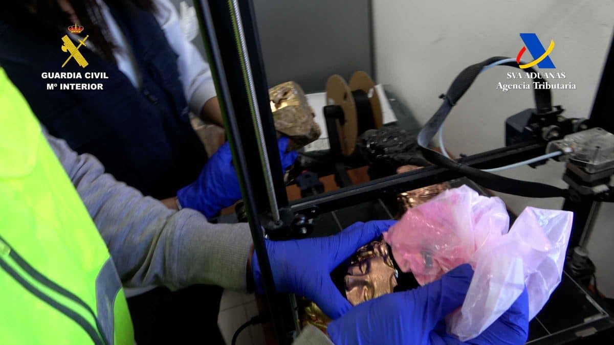 La Guardia Civil ha detenido a un ciudadano español responsable de una serie de envíos de droga por paquetería desde Sevilla al extranjero, especialmente hacia Estados Unidos. Esta persona utilizaba para los envíos figuras decorativas de fibra creadas con una impresora 3D, en cuyo interior se encontraban paquetes de MDMA (éxtasis).