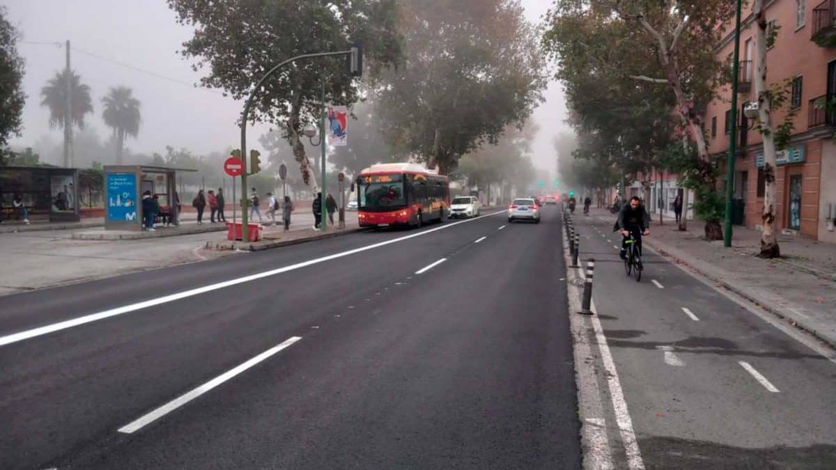 La calle de la Resolana ha sido reasfaltada por completo, desde la Glorieta Duquesa Cayetana de Alba hasta el Parlamento de Andalucía.