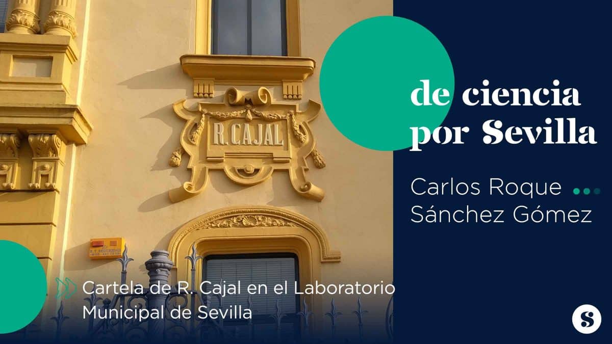 Y aquí continúo, aunque es probable que no lo recuerde pues apareció en el segundo de los reconocimientos sevillanos de este De Ciencia por Sevilla, en febrero próximo hará un año, y se encuentra en la fachada de la calle María Auxiliadora, orientada al noroeste y a un lado de la puerta principal con su impresionante rótulo nominativo, LABORATORIO MUNICIPAL, y cronológico, AÑO 1912. Una cartela en la que reza “R. Cajal” que, como le decía anteriormente, por su redacción, parece dar la razón al camarero y su “Don Ramón”.
