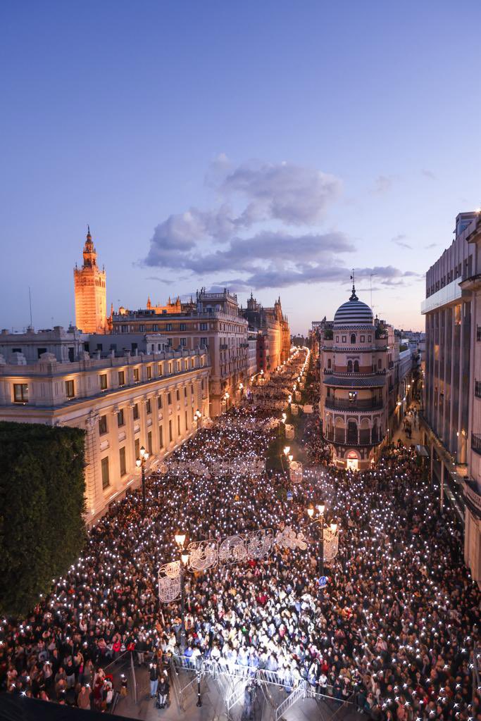 Para ello, los aledaños del Arquillo del Ayuntamiento y la plaza de San Francisco han acogido desde las 17:30 horas actuaciones de animación y tras el encendido, se celebrará un concierto de homenaje al emblemático grupo español de pop Mecano, toda vez que ya a las 21:00 horas tocará la sección Musical de la Hermandad Sacramental de Los Gitanos, en esta serie de actividades que incluyen un pasacalles que partirá de la Plaza de La Campana, para continuar por Sierpes y alcanzar la Plaza de San Francisco.