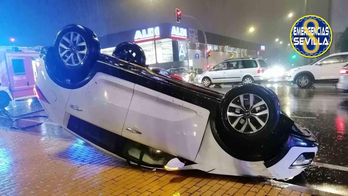 Una mujer ha resultado herida leve al volcar su coche mientras circulaba por la avenida Alcalde Manuel del Valle de Sevilla capital, coincidiendo con los avisos amarillos por viento y lluvia que pesan sobre la ciudad.