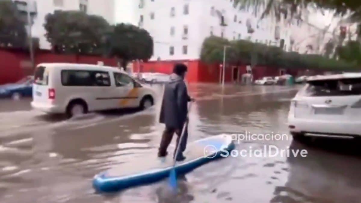 Pero un vecino, en lugar de ver la situación como algo negativo, decidió darle una vuelta de hoja al asunto y sacar su tabla de paddle surf a Triana. En las imágenes, que ha difundido a través de X (antes Twitter) la cuenta de Social Drive, se puede ver a este trianero, remo en mano, paseando por su barrio.