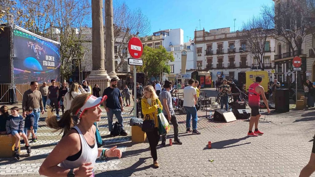 Desde allí, los participantes toman por José María Moreno Galván, Luis Montoto, Recaredo, Resolana, Alameda de Hércules, Plaza del Duque, Velázquez, Tetuán, Plaza Nueva, Avenida Constitución, Puerta de Jerez, San Fernando, Plaza de Don Juan de Austria, Avenida de El Cid, Glorieta San Diego, Avenida de María Luisa, Glorieta de los Marineros Voluntarios y Paseo de las Delicias, donde estará ubicada la meta.