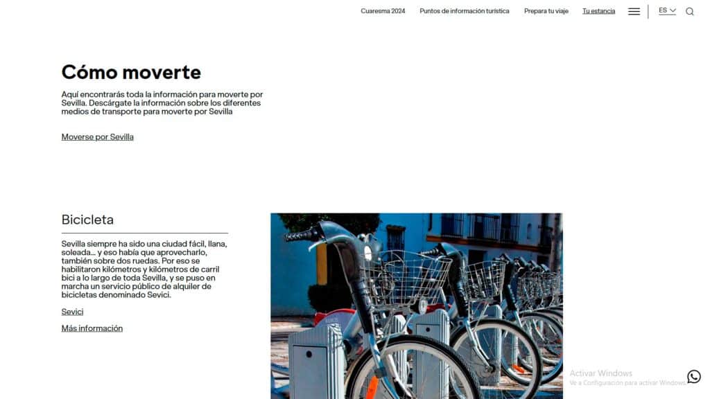 La última sección «Tu Estancia» muestra distintas opciones de movilidad detalladas: bicicleta, autobús o metro. También encontramos otra información de interés, como objetos perdidos, contacto con la policía, servicios de consignas o consulados.