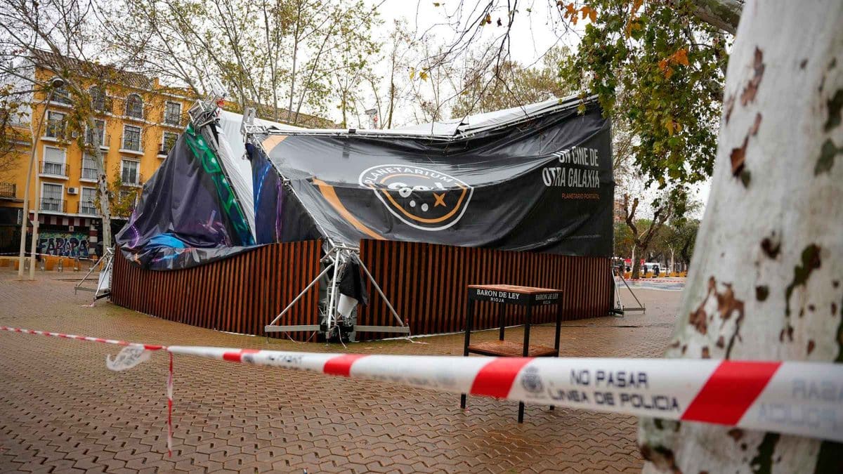 Según tales fuentes, sobre las 12:50 horas varias personas alertaban de que se había desplomado parte de la carpa de una instalación efímera ubicada en la Alameda. Por ello, fueron movilizados los servicios de emergencia, que han dado cuenta de tres personas heridas o afectadas.