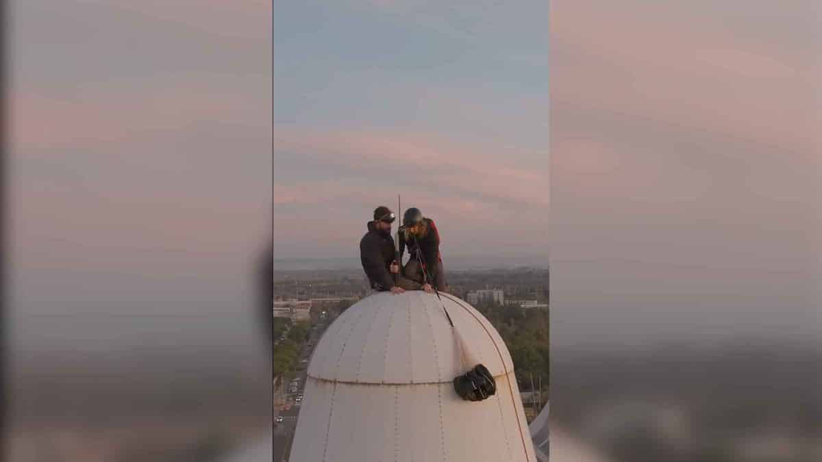 Los paracaidistas fueron asistidos por un dron que filmaba desde arriba y un amigo que los esperaba abajo, completando sus acciones en menos de cinco minutos antes de abandonar la réplica del cohete para evitar llamar la atención de las autoridades.