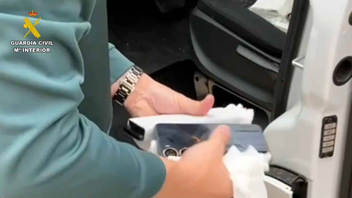 Durante el registro de la furgoneta, los agentes localizaron un doble fondo debajo del asiento del conductor con 43 móviles de gama media y alta. Estaban envueltos en papel de cocina y algunos de ellos contaban aún con el cordón de seguridad del establecimiento.