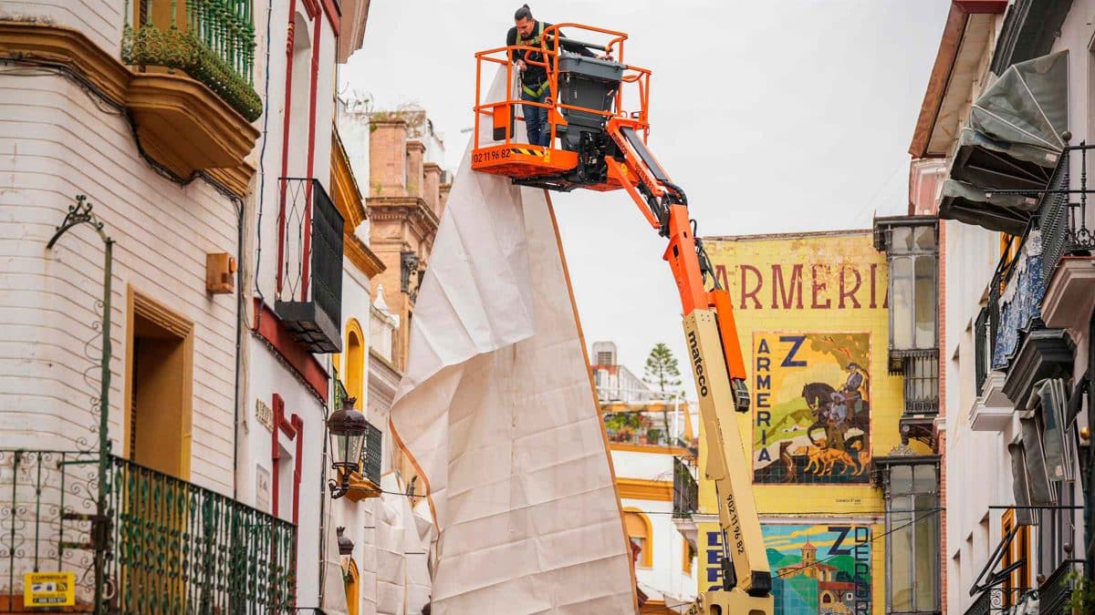 El Ayuntamiento de Sevilla ha comenzado a instalar los toldos por el entorno de la Campana y la calle Sierpes, para continuar en los próximos días con el entoldado de las calles Albareda, Alcaicería de la Loza, Almirante Bonifaz, Cerrajería, Córdoba, Cuna, Duque de la Victoria, Empecinado, Francos, General Polavieja, Hernando Colon, Jaén, Plaza Jesús de la Pasión, Lineros, Plaza de la Campana, Pedro Caravaca, Puente y Pellón, O’Donnell, Rioja, Rivero, Sagasta, Sierpes, Tetuán, Velázquez, Baños y, Carlos Cañal, estas dos últimas de nueva incorporación (en 2022).