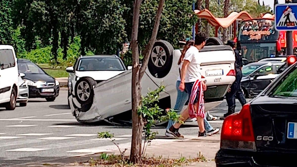 Allí, dos turismos han colisionado sobre las 13:40 horas, con el posterior vuelco de uno de ellos. Fueron movilizados efectivos de la Policía Local, el 061 y hasta los bomberos bajo la previsión de tener que excarcelar del coche volcado a dos personas, pero finalmente tal extremo no ha sido necesario.