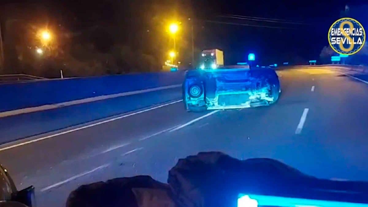 Efectivos del cuerpo de Bomberos de Sevilla han intervenido en la madrugada de este jueves como consecuencia de un accidente de tráfico ocurrido en la SE-30 que se ha saldado con el vuelco aparatoso de un vehículo.