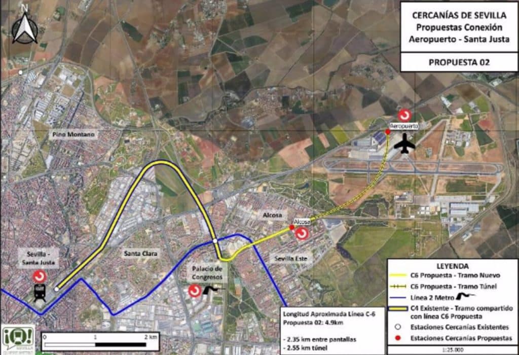 Sevilla Quiere Metro valora «positivamente» la alternativa propuesta por la Junta de Andalucía para conectar el aeropuerto y la estación ferroviaria de Santa Justa, una vez que se han conocido las conclusiones del estudio informativo para la conexión entre ambas terminales. Dicho estudio ha planteado unir los dos nodos de transporte con un trazado que incluya la estación Palacio de Congresos y cuente con una nueva estación en Parque Alcosa-Sevilla Este.
