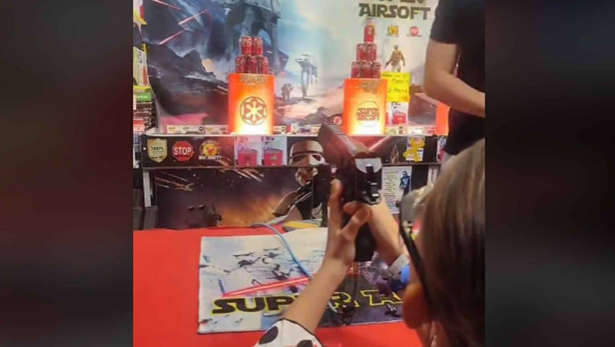 El usuario yimi_1y en TikTok ha subido un vídeo que comienza diciendo «cuando el de la tómbola no sabe que tu hija está federada en tiro olímpico». Acto seguido, la pequeña pistolera ataviada con su traje de flamenca derriba las cinco latas de refresco sin fallar ni un solo disparo.