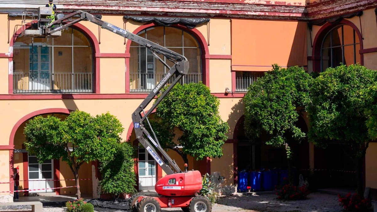La Diputación de Sevilla ha iniciado una serie de obras de conservación en el edificio A de la sede provincial que afectarán a las cuatro fachadas del inmueble –avenida Menéndez Pelayo, calle General Ríos, calle Demetrio de los Ríos y patio del olivo– y a la totalidad de los paramentos del patio central, incluyendo galerías altas, bajas y túneles de acceso.