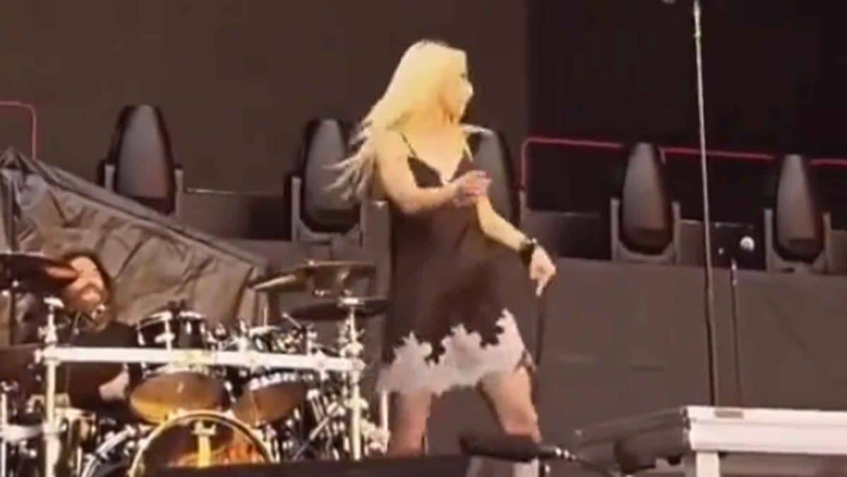 La artista terminó de cantar su canción Witches Burn, y el público que se encontraba en las primeras filas, comenzó a señalarle la pierna, donde tenía enganchada al animal, pero Taylor seguía sin darse cuenta.