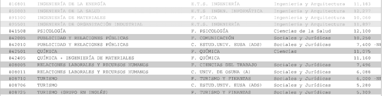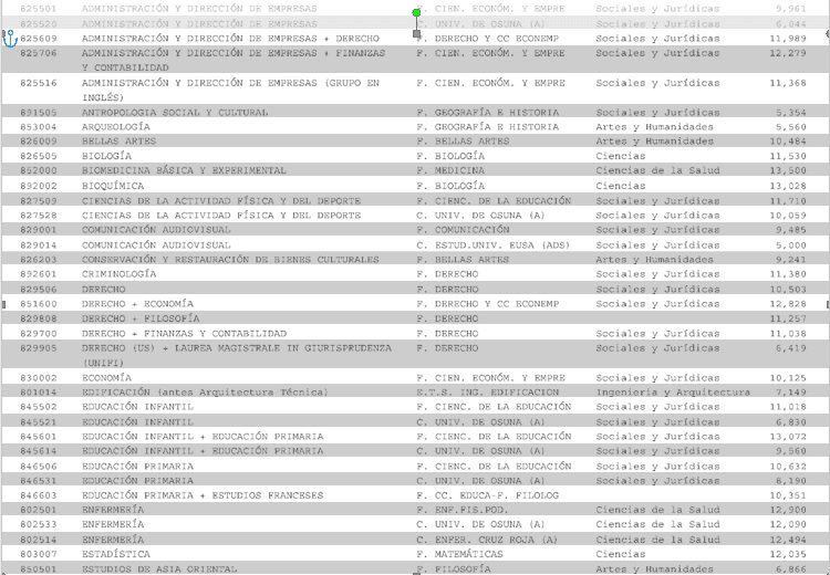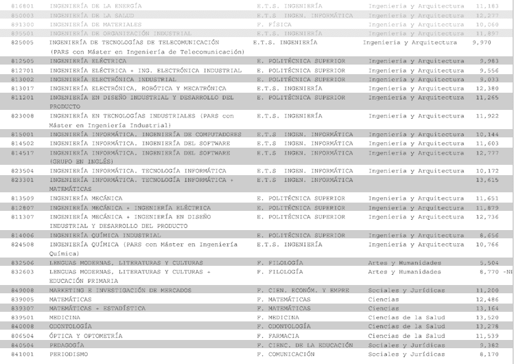 | Filología Clásica + Filología Hispánica | F. Filología | 13,025 |