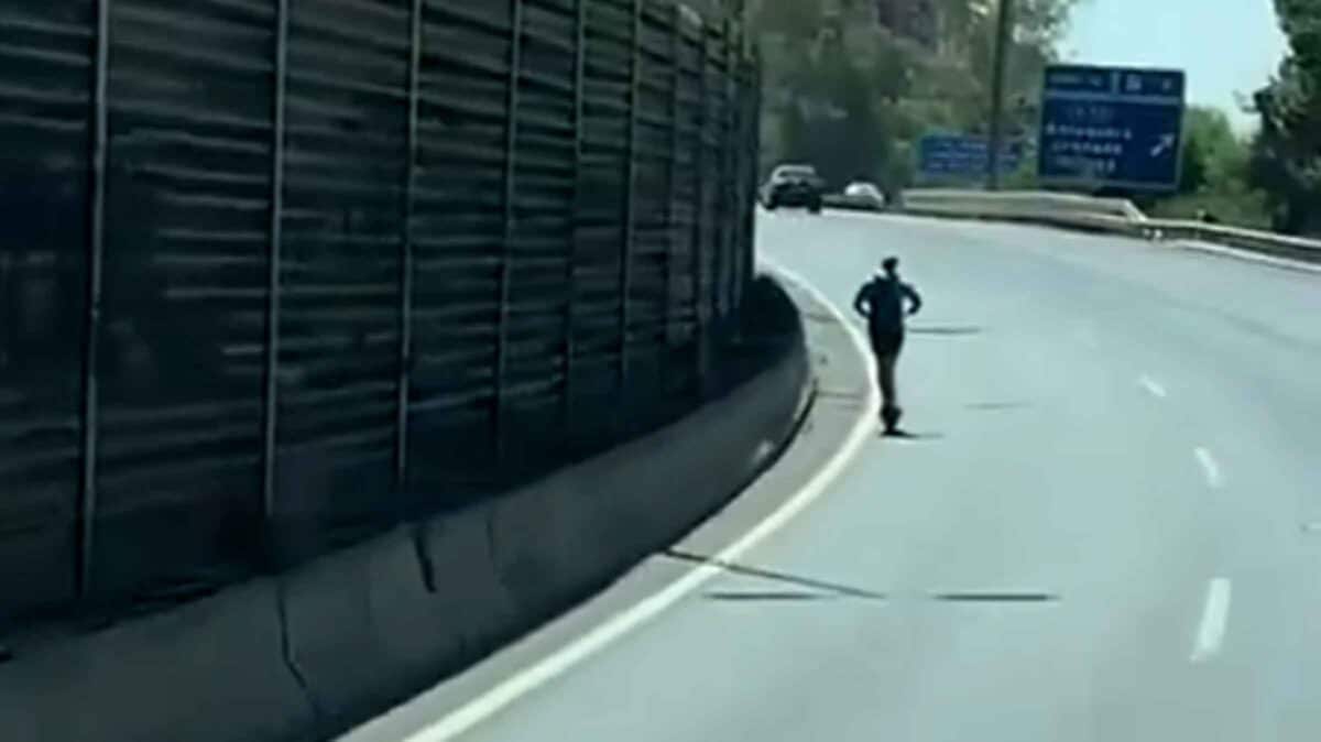 El autor del vídeo, conductor de un camión, enfoca su velocímetro para mostrar que circula a unos 70 kilómetros por horas, velocidad que el patinete llega a superar. El atrevido conductor del patinete llega incluso a cambiar de carril, girando la cabeza hacía atrás por encima del hombro al no poseer retrovisores.