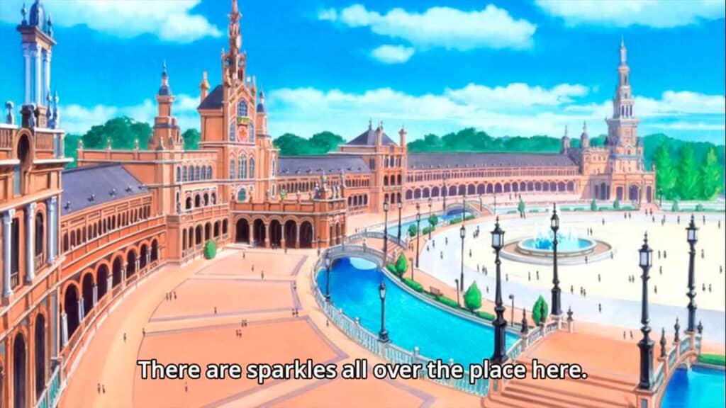 Para todo aquellos que estén interesados en la serie, se encuentra disponible al completo en Crunchyroll, una plataforma de streaming especializada en animación japonesa. A continuación, te dejamos con algunas capturas de cómo luce la Plaza de España y sus alrededores en este anime: