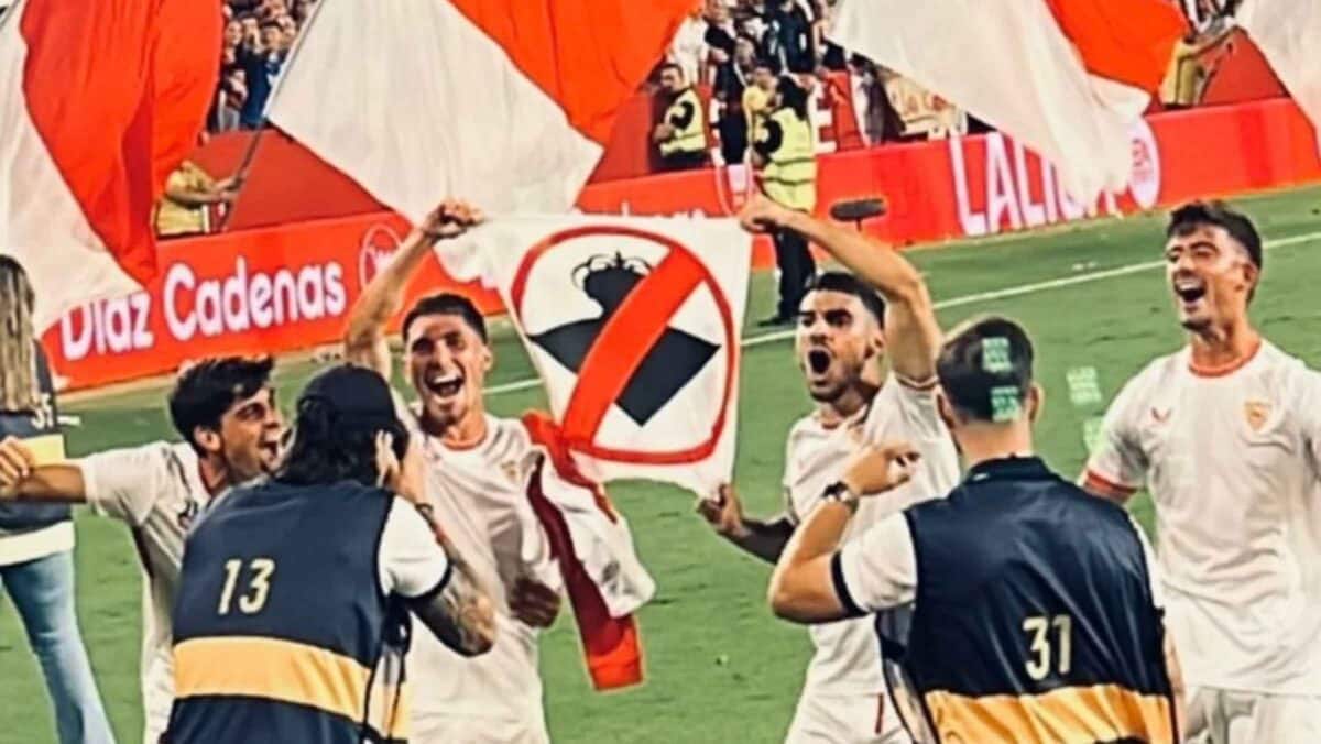 El Sevilla logró vencer al Betis en el primer derbi de la temporada con un resultado de 1-0. Al finalizar el partido, los jugadores sevillistas celebraron con la afición en el estadio, y algunos canteranos del equipo, como Isaac Romero, Juanlu Sánchez, José Ángel Carmona y Kike Salas, mostraron una bandera con una silueta del escudo del Betis tachado en rojo.
