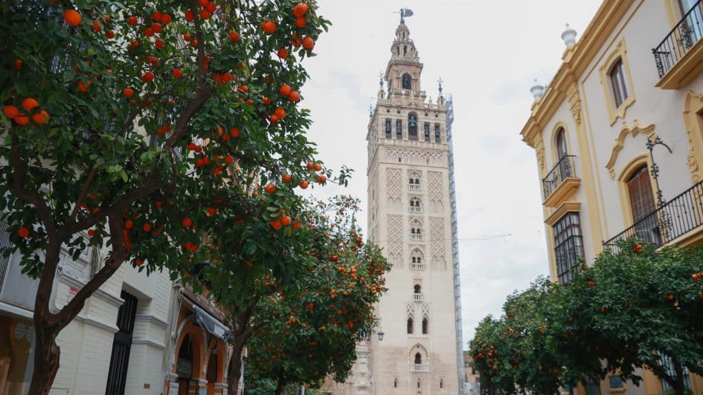 La Giralda, emblema de Sevilla, fue originalmente el minarete de la gran mezquita de la ciudad durante la época almohade. Construida en el siglo XII, fue transformada en campanario cuando la mezquita fue reemplazada por la Catedral de Sevilla, una de las más grandes del mundo. Hoy, La Giralda representa la mezcla cultural de la ciudad, combinando elementos islámicos y renacentistas.