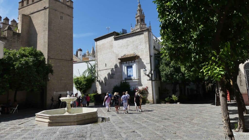 Santa Cruz, el barrio más antiguo de Sevilla, fue el antiguo barrio judío en la Edad Media. Sus estrechas calles y plazas llenas de flores están rodeadas de leyendas y misterio. Dicen que en una de estas calles, llamada Calle de la Muerte, hubo en el pasado duelos a muerte entre amantes y caballeros de la nobleza.
