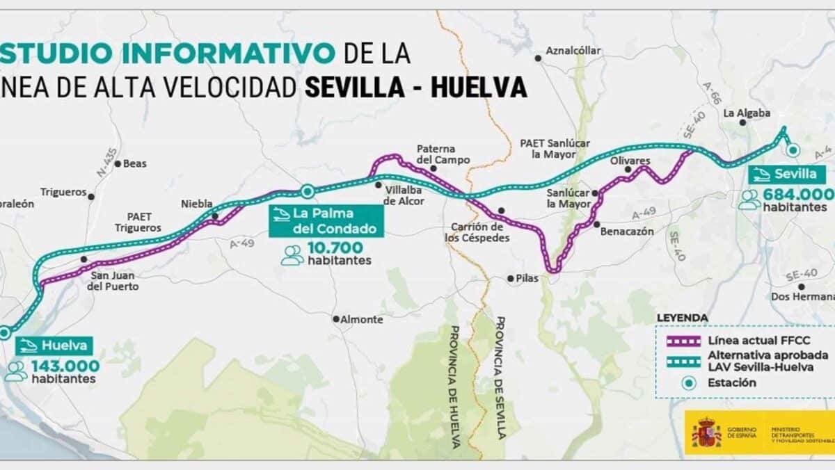 El Ministerio de Transportes y Movilidad Sostenible ha aprobado «definitivamente» el estudio informativo de la nueva línea de alta velocidad Sevilla-Huelva, así como su expediente de información pública y audiencia, «un hito fundamental para poder iniciar los trámites para licitar la redacción del proyecto» de esta futura línea que prevé conectar ambas ciudades en tren «en 26 minutos y mejorar la calidad de los servicios ferroviarios».