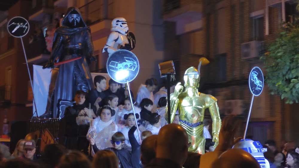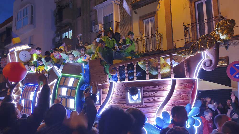 Una gran afluencia de público acompañó a Sus Majestades durante todo el recorrido, que partió desde Monte Pirolo sobre las 17:00 horas de la tarde. La cabalgata acogió a un cortejo formado por veinticinco carrozas, presididas por las de la Estrella de la Ilusión, Melchor, Gaspar y Baltasar.