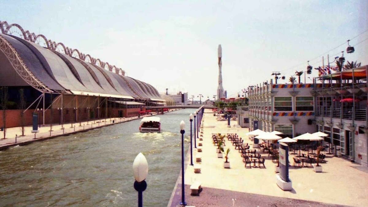 El Canal de los Descubrimientos, creado como parte de las infraestructuras para la Exposición Universal de Sevilla en 1992, se erigió en su momento como uno de los elementos más característicos del evento. Conectado al cauce principal del Guadalquivir mediante esclusas, el canal permitió estabilizar los niveles de agua y mejorar la navegabilidad en la zona. Además, su diseño facilitó la integración de espacios recreativos y paisajísticos que embellecían el entorno del evento.