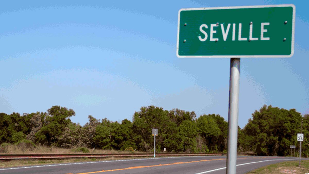 Seville, Georgia – Fundada en 1887, con unos 190 habitantes. Su nombre proviene de las hijas del magnate ferroviario Coronel Hawkins, quienes eligieron nombres europeos para las nuevas paradas del tren tras un viaje por Europa.