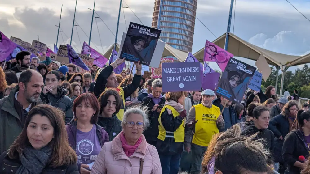 Las tres marchas por el Día Internacional de la Mujer partieron desde Torre Sevilla, Plaza Nueva y Palacio de San Telmo. Los asistentes desplegaron pancartas con lemas universales y entonaron los mismos a lo largo de los distintos recorridos que realizaron este 8 de marzo.