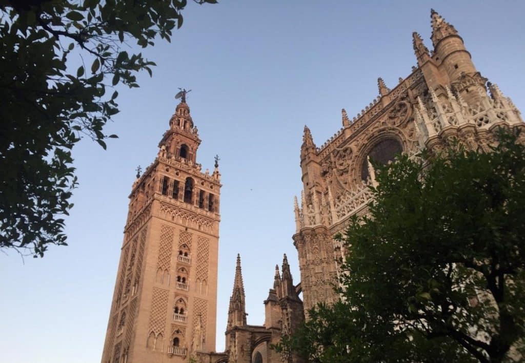 La Catedral de Sevilla es la catedral gótica más grande del mundo y alberga en su interior el sepulcro de Cristóbal Colón. Su construcción se llevó a cabo sobre la antigua mezquita almohade, de la que se conserva el icónico alminar, hoy conocido como la Giralda. Esta torre es uno de los símbolos más representativos de la ciudad, con una fusión arquitectónica que combina el estilo islámico con el renacentista. Desde su cima se pueden admirar unas vistas impresionantes de Sevilla.