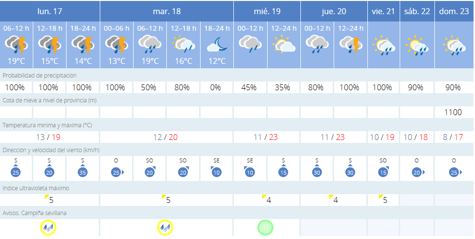 Ante esta previsión, se recomienda a los sevillanos estar atentos a las actualizaciones meteorológicas y tomar precauciones en los días con mayor actividad tormentosa.