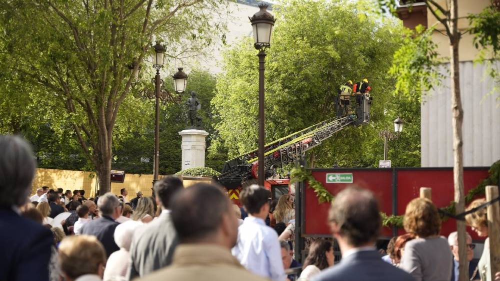 Los bomberos del servicio de Prevención, Salvamento y Extinción de Incendios del Ayuntamiento de Sevilla han realizado una intervención la tarde de este Domingo de Ramos en un árbol de la céntrica Plaza del Duque de la Victoria, que obstaculizaba el tránsito del Cristo de la Buena Muerte de la Hermandad de la Hiniesta.